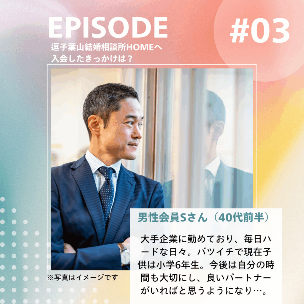 今回は友人に背中を押されたこともあり、時間はかかってもいいから結婚相談所でよいご縁がないかやってみよう!と思ってくださったそうです。