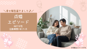 婚活は不安や迷いを感じることもありますが、継続することで必ずご自身に合うご縁に出会えます。今回のご成婚は、その大切さを改めて教えていただいた素敵なエピソードです。
